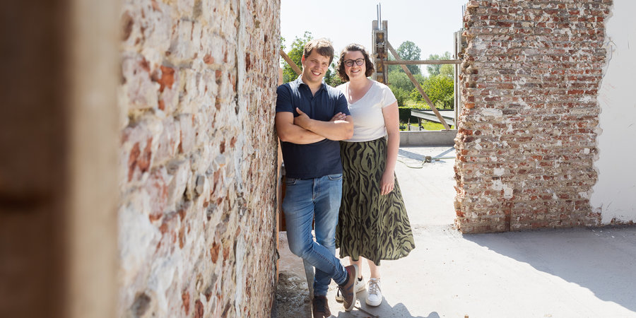 En 2023, Caroline et Gino seront mariés depuis quatre ans. Elle est enseignante, il est représentant chez un fournisseur de produits agricoles. Occupés par leurs enfants pendant la journée, on les trouve souvent le soir et le week-end sur leur chantier à Temse, où ils éco-rénovent leur maison.