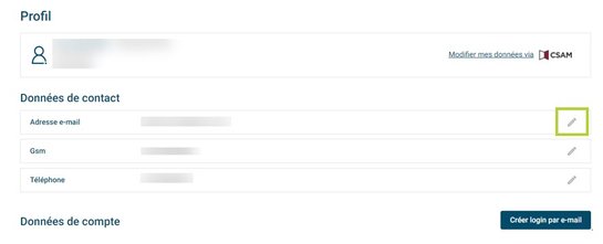 Dans ce cas, vous pouvez toujours vous connecter via votre eID ou Itsme®. Sous "Mon profil", modifiez votre adresse e-mail de connexion. Ce sera désormais également votre nouveau nom d'utilisateur.
