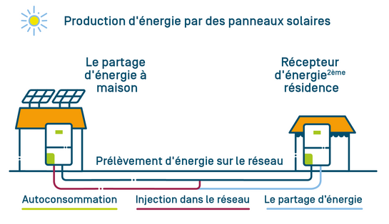 - Utiliser l'énergie verte dans différents endroits: le partage d'énergie vous permet d'utiliser l'énergie verte que vous produisez vous-même dans des endroits où vous n'avez pas de panneaux solaires. Cela augmente la flexibilité et la durabilité de votre consommation d'énergie.