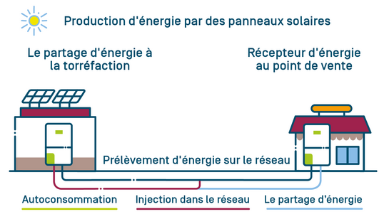- Sofia et Valentina, chefs d'entreprise, souhaitent partager l'énergie qu'elles produisent dans leur torréfaction avec leur point de vente situé à un autre endroit où le contrat d'énergie est également à leur nom. L'exemple présenté sur le site web de la Vlaamse Nutsregulator montre comment cela fonctionne et ce que cela rapporte.