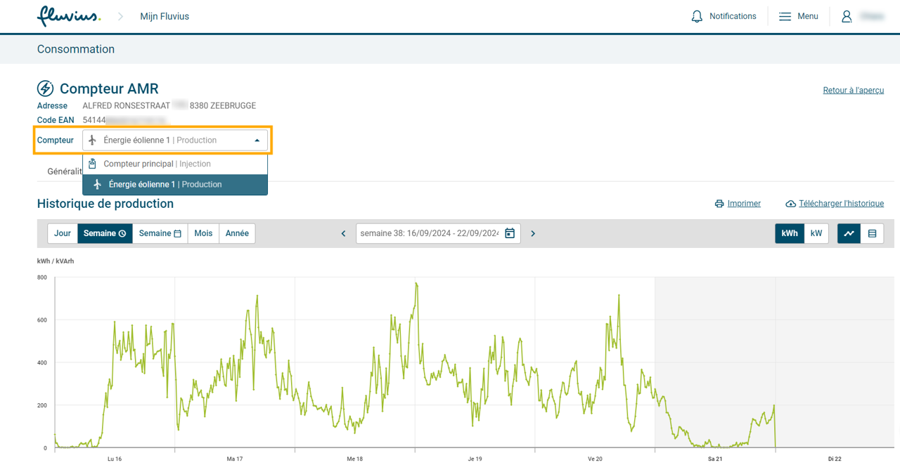 Non, contrairement aux compteurs numériques ordinaires, où nous affichons les données de mesure par compteur, Mijn Fluvius n'offre que les données de mesure au niveau de l'EAN pour les compteurs AMR. C'est la solution la plus logique pour les compteurs AMR et c'est également de cette manière que nous envoyons les données à votre fournisseur d'énergie. L'interprétation correcte des données de mesure au niveau du compteur nécessite un grand nombre de facteurs supplémentaires, que nous ne pouvons pas partager avec l'utilisateur au niveau de chaque compteur.