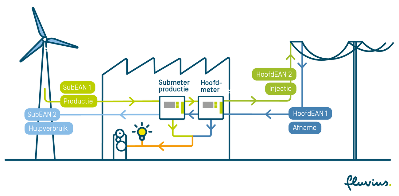 L'injection est l'énergie que les producteurs d'électricité, par exemple les éoliennes et les panneaux photovoltaïques, injectent dans le réseau. Comme pour le prélèvement, le compteur (principal) mesure cette énergie pour transmettre cette information à votre fournisseur d'énergie.