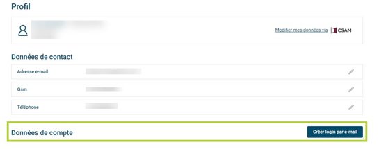 Vous trouverez sous "Données du compte" le bouton "Créer une connexion par e-mail".
