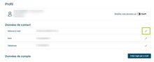 Dans la rubrique "Coordonnées", vous pouvez modifier votre adresse électronique en cliquant sur le crayon.