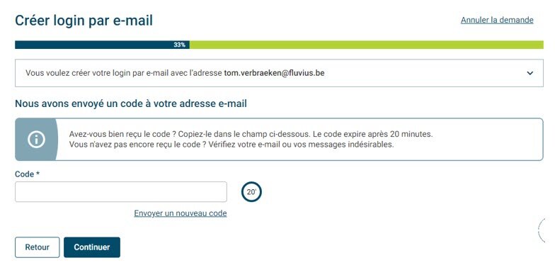 Dans ce cas, vous pouvez toujours vous connecter via votre eID ou Itsme®. Sous "Mon profil", modifiez votre adresse e-mail de connexion. Ce sera désormais également votre nouveau nom d'utilisateur.