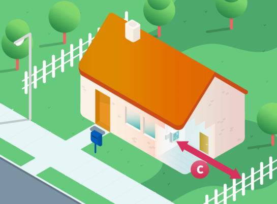 Afstand C: van rechterperceelsgrens tot aan de energiemeter