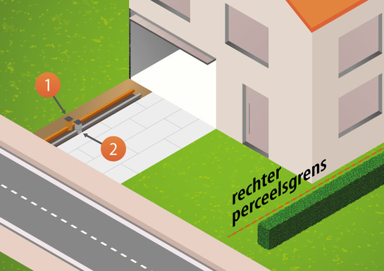 - De afstand van de rechterperceelsgrens tot aansluitputjes zoals op deze tekening. Dit kan je meten op je bouwplan.
