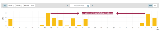 Natuurlijk helpt het om je verwarming ’s ochtends een uur later en ’s avonds een uur vroeger in te schakelen. Ook je thermostaat een graadje lager zetten, helpt al heel wat aardgas te besparen. Maar helemaal interessant wordt het als je je uurgrafieken onder de loep neemt.