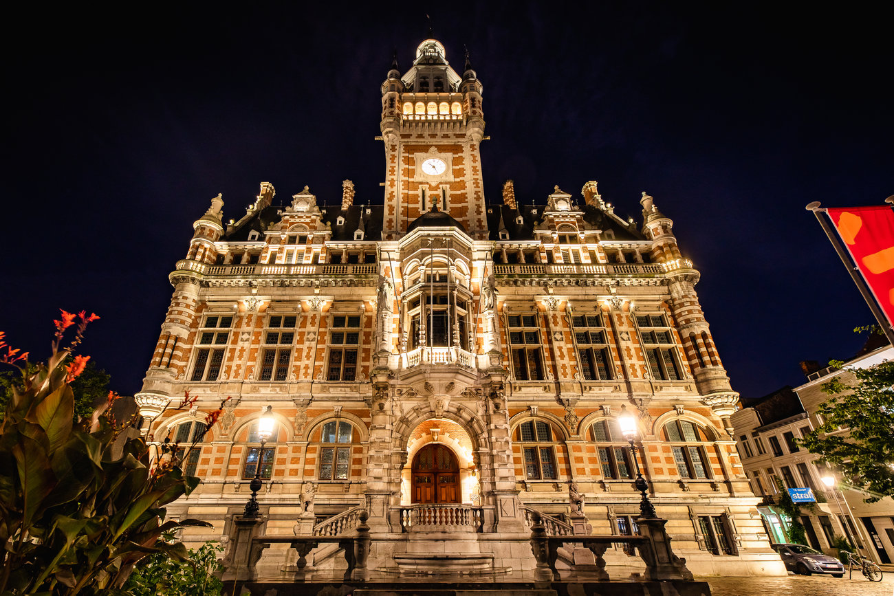 “We zijn er bijna twee jaar mee bezig geweest, maar het is gelukt. Vooral ‘s avonds loont het om te komen kijken: langs elke zijde schijnt een zachte gloed op het gebouw. Bouwkundige details als nissen, beelden en leeuwenkoppen worden extra in de kijker gezet, net zoals het glas-in-loodraam in de achtergevel. We hebben energiezuinige ledverlichting met vooral warm wit licht gebruikt. Dankzij die nieuwe, sfeervolle verlichting is het gerenoveerde Districtshuis dé blikvanger op het Moorkensplein.”