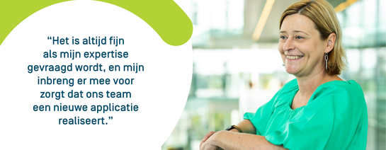 Daarbij moeten we elkaar wel wat vinden: wat voor de interne klant een eenvoudige vraag lijkt, kan voor ons een ingewikkeld kluwen zijn om te ontrafelen. En tegelijkertijd moet ik binnen ICT een groot raderwerk op poten zetten om de vraag te beantwoorden. Zo geef ik mee richting aan iets wat een grotere behoefte van het bedrijf invult en dat is voor mij heel waardevol.”