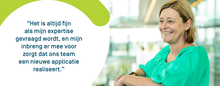 Vorig jaar ben ik in een ver gevorderd stadium betrokken bij een project. De deadline kwam snel dichterbij en dreigde niet gehaald te worden. Ik had nog ruimte qua werklast en heb me erin vastgebeten. Ik ben altijd blij als mijn expertise wordt gevraagd en mijn inbreng er mee voor zorgt dat een applicatie gerealiseerd wordt. Daar haal ik enorm veel voldoening uit.”
