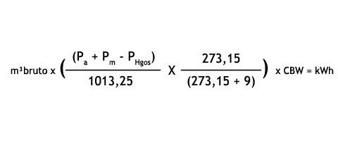 De omzetting van m³ naar normale kubieke meter (m³(n)) gebeurt op basis van de gemiddelde atmosferische druk (Pa), de gasdruk (Pm), de gastemperatuur en de hoogteligging van de betrokken regio (PHgos).