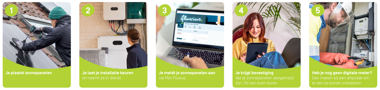 Zodra de zonnepanelen aangemeld zijn, ontvangt de energieleverancier automatisch een seintje van ons. Je hoeft dus zelf geen stappen te ondernemen.