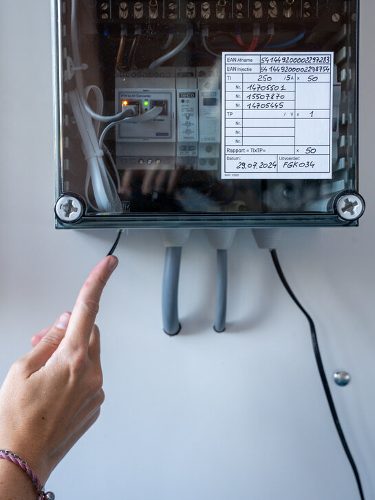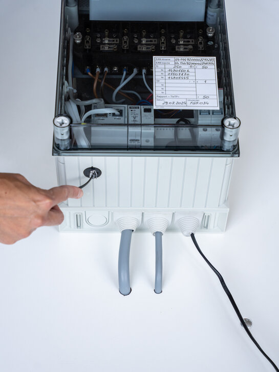 Je kan je AMR-meter verbinden met een slim apparaat of energiebeheersysteem via de gebruikerspoort (A1-poort) onderaan de meterkast. Hiermee kan je je energieverbruik beter beheren en optimaliseren.
