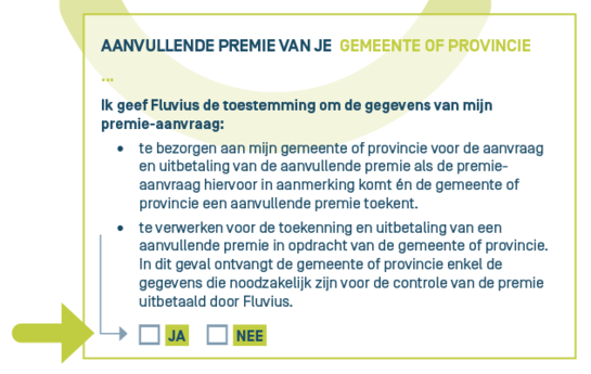 Staat jouw gemeente in de lijst, dan kunnen we de gegevens over jouw premiedossier aan je gemeente bezorgen, zodat de toekenning en uitbetaling van jouw aanvullende premie vlotter verloopt. Je hoeft daarvoor enkel je toestemming te geven, dat wij, Fluvius, de gegevens van jouw premie-aanvraag mogen delen met je gemeente. Kruis die mogelijkheid dus zeker aan bij de aanvraag van jouw premie.