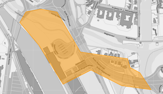 Je kan het plein blijven gebruiken om de openbare fietsenstalling en Nieuw Brugge te bereiken. - Toegang tot NMBS-fietsenstalling>