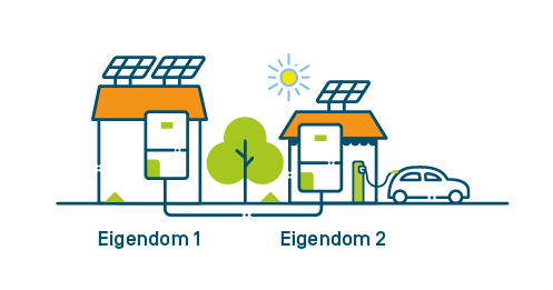 Het basisprincipe van energiedelen met jezelf is dat het overschot aan energie dat je geproduceerd hebt niet kan verkopen aan de andere toegangspunten die op jouw naam staan. Het grote voordeel van energiedelen met jezelf is dat je de stroom die je zelf hebt geproduceerd kan hergebruiken op andere locaties.