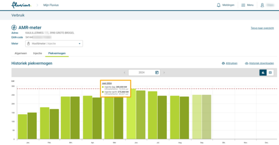 Momenteel toont Mijn Fluvius bij digitale meters enkel het piekvermogen van de afname, en dus niet van de injectie. Klanten met een AMR-meter in plaats van een gewone digitale meter zien zowel het piekvermogen van afname als injectie, voor elektriciteit én voor gas.